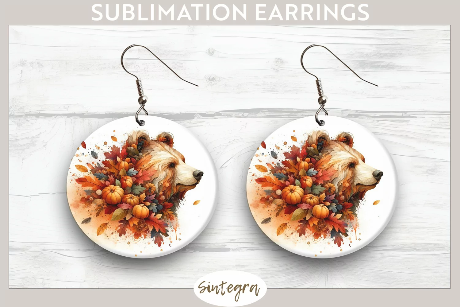 Fall Bear Animal v6 Round Earrings Sublimation example image 1