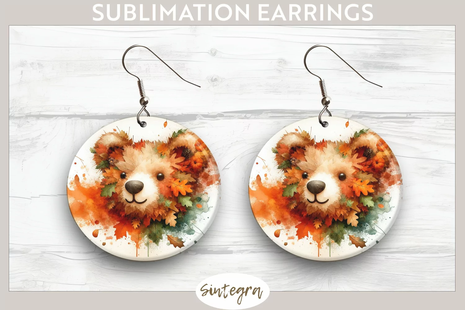 Fall Bear Animal v8 Round Earrings Sublimation example image 1