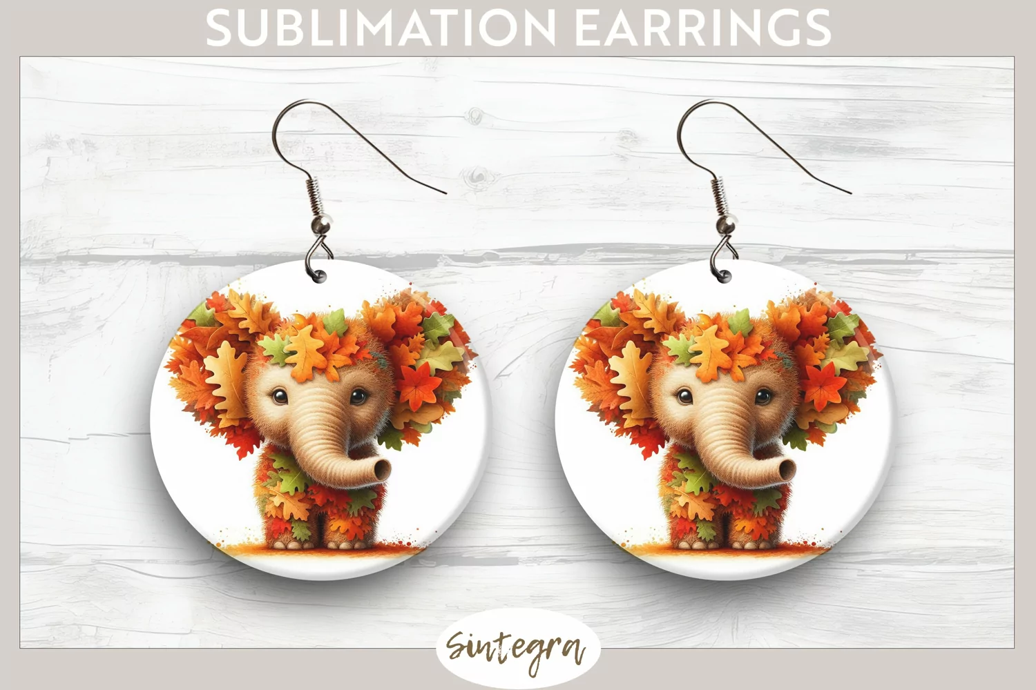 Fall Elephant Animal v4 Round Earrings Sublimation example image 1