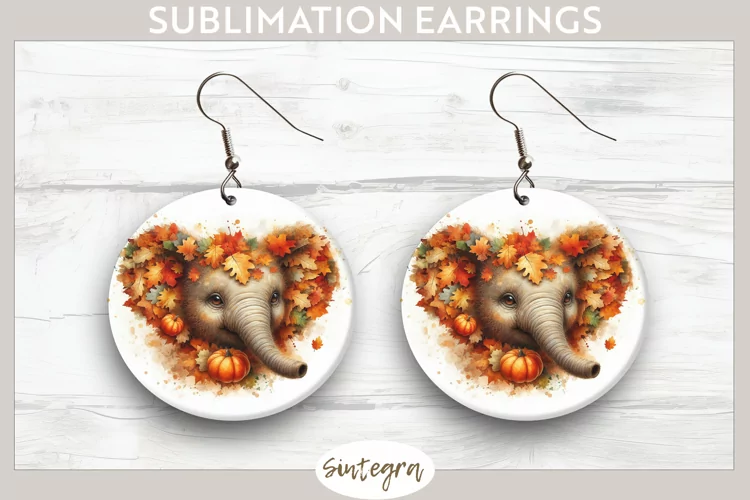 Fall Elephant Animal v8 Round Earrings Sublimation example image 1