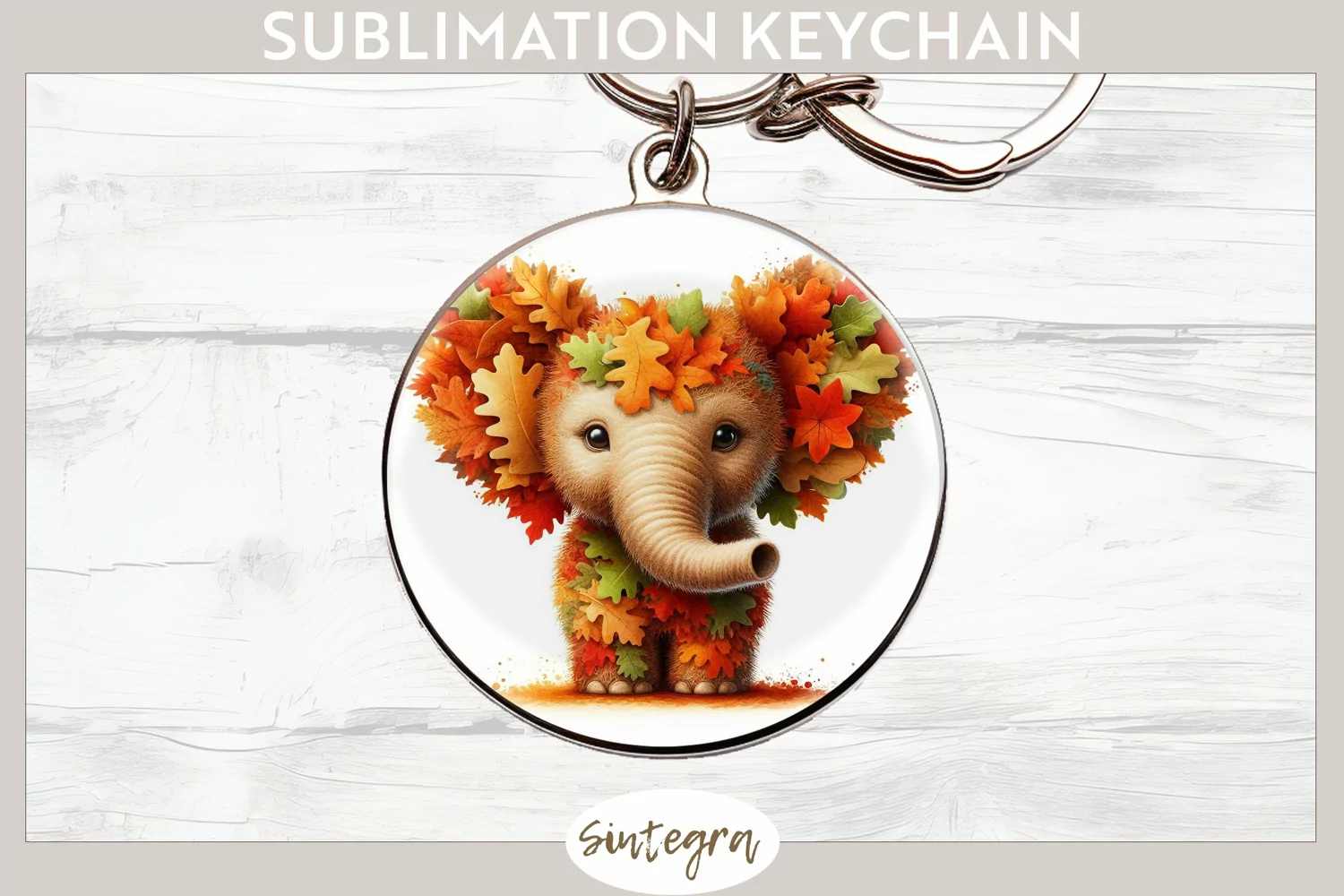 Fall Elephant Animal v4 Round Keychain Sublimation example image 1