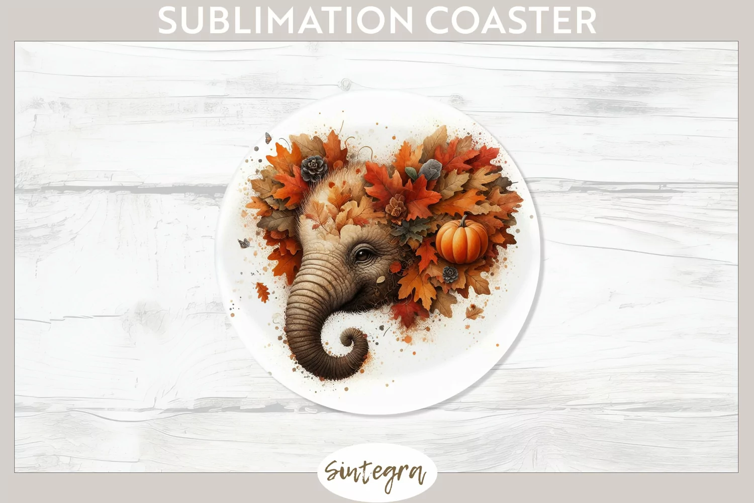 Fall Elephant Animal v5 Round Coaster Sublimation example image 1