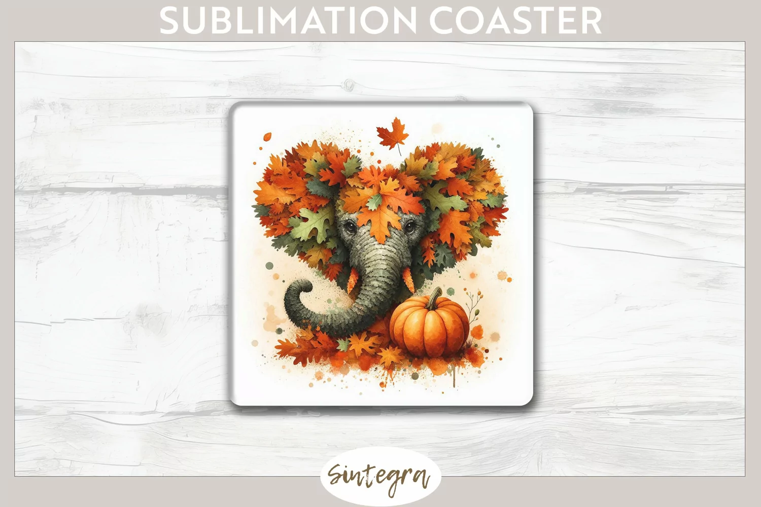 Fall Elephant Animal v1 Square Coaster Sublimation example image 1