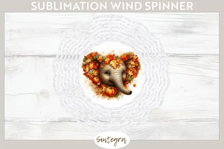 Fall Elephant Animal v8 Wind Spinner Sublimation example image 1