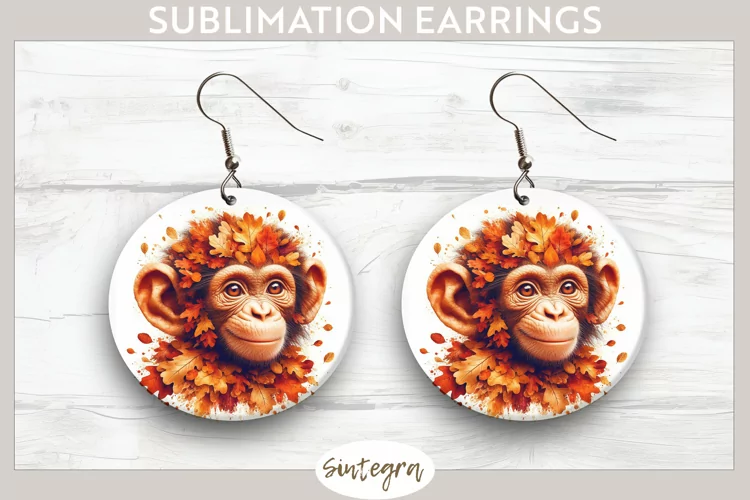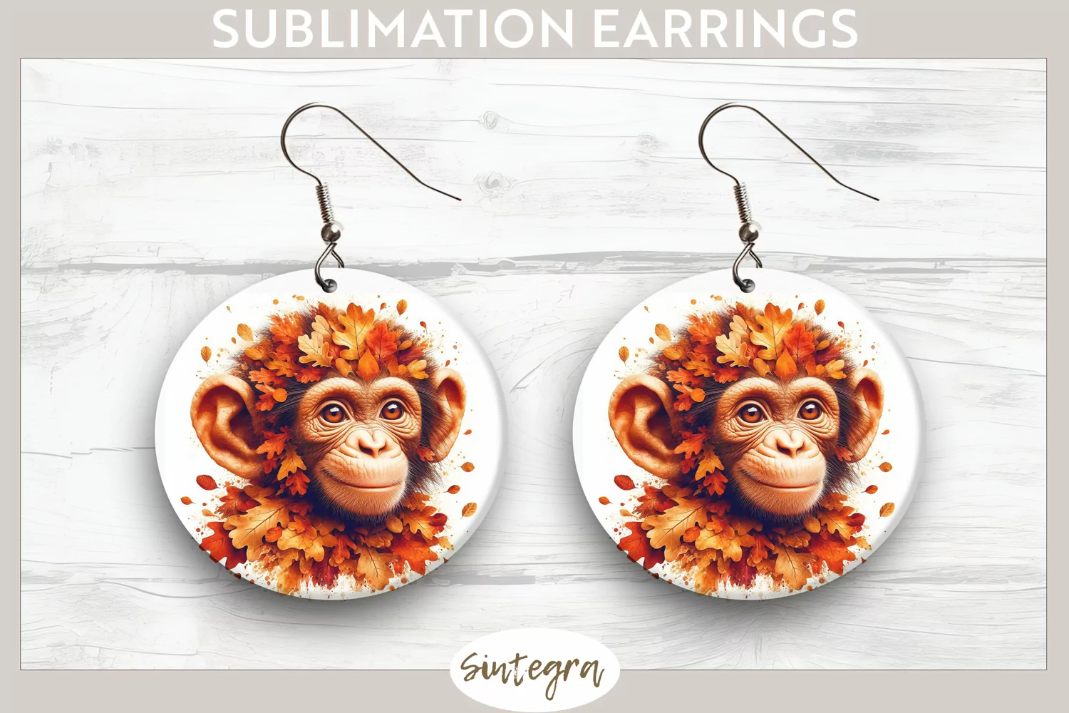 Fall Chimpanzee Animal v1 Round Earrings Sublimation example image 1