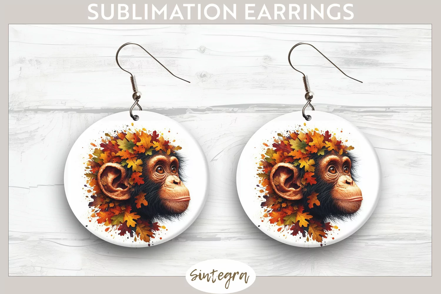 Fall Chimpanzee Animal v7 Round Earrings Sublimation example image 1