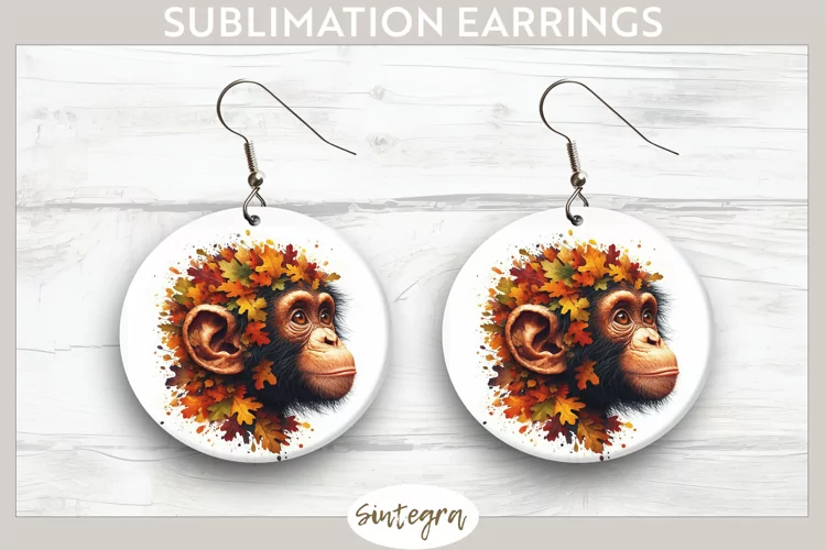 Similar Design Products to Fall Chimpanzee Animal v7 Round Earrings Sublimation