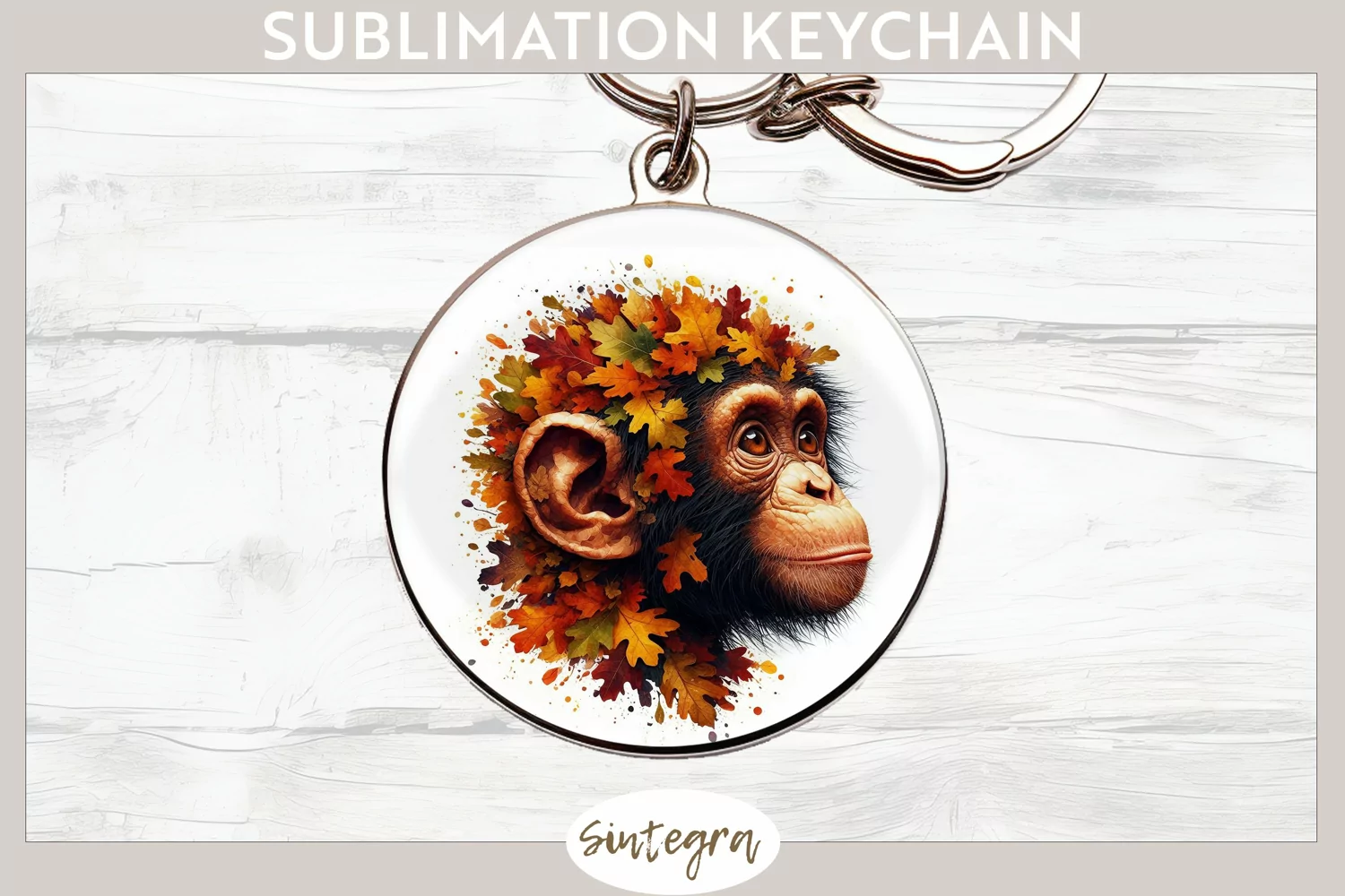 Fall Chimpanzee Animal v7 Round Keychain Sublimation example image 1
