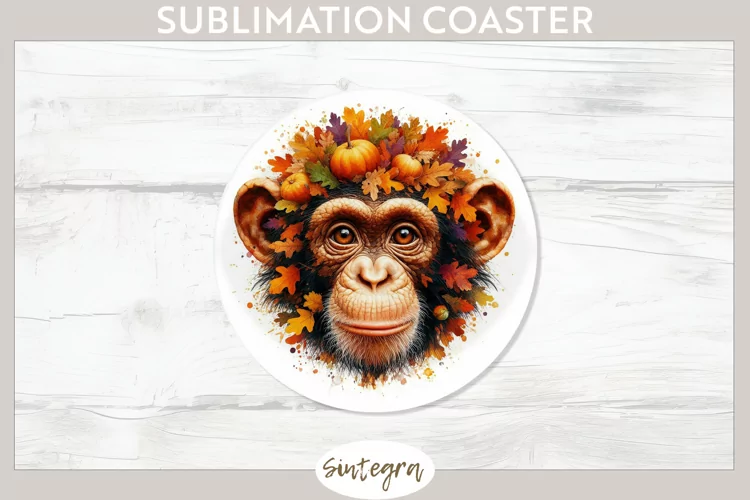 Fall Chimpanzee Animal v6 Round Coaster Sublimation example image 1