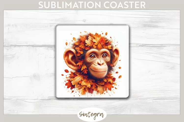 Sublimation Image Sublimation Print Coaster Template Floral Pumpkin Sublimation Sublimation Coaster Floral Pumpkin Sublimation Png Autumn Floral Pumpkin Square Coaster Png Sublimation Square Coaster Fall Chimpanzee Animal With Pumpkin
