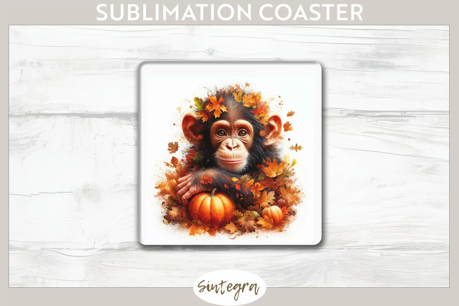 Fall Chimpanzee Animal v3 Square Coaster Sublimation