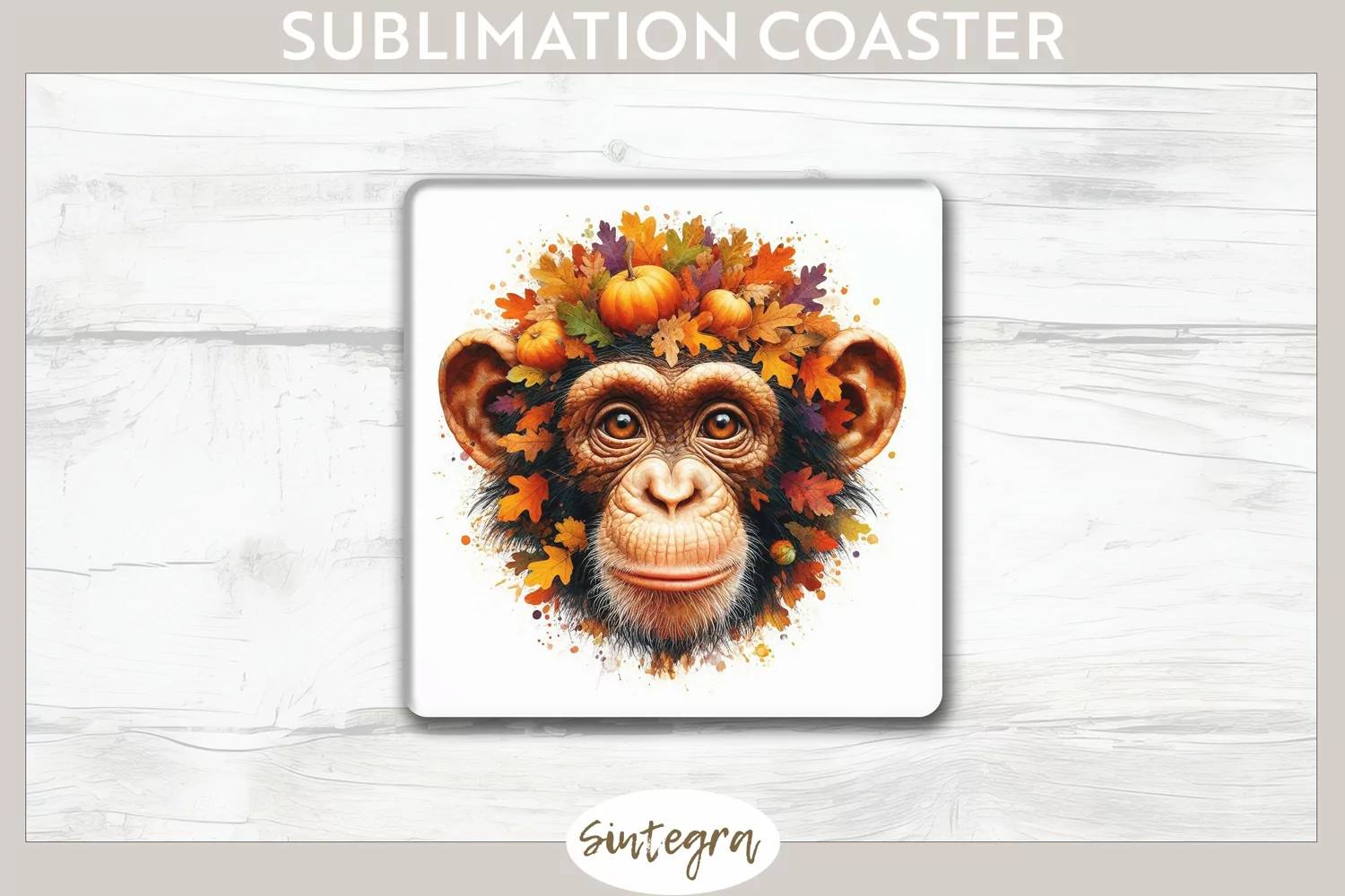 Fall Chimpanzee Animal v6 Square Coaster Sublimation example image 1