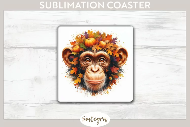 Sublimation Image Sublimation Print Coaster Template Floral Pumpkin Sublimation Sublimation Coaster Floral Pumpkin Sublimation Png Autumn Floral Pumpkin Square Coaster Png Sublimation Square Coaster Fall Chimpanzee Animal With Pumpkin