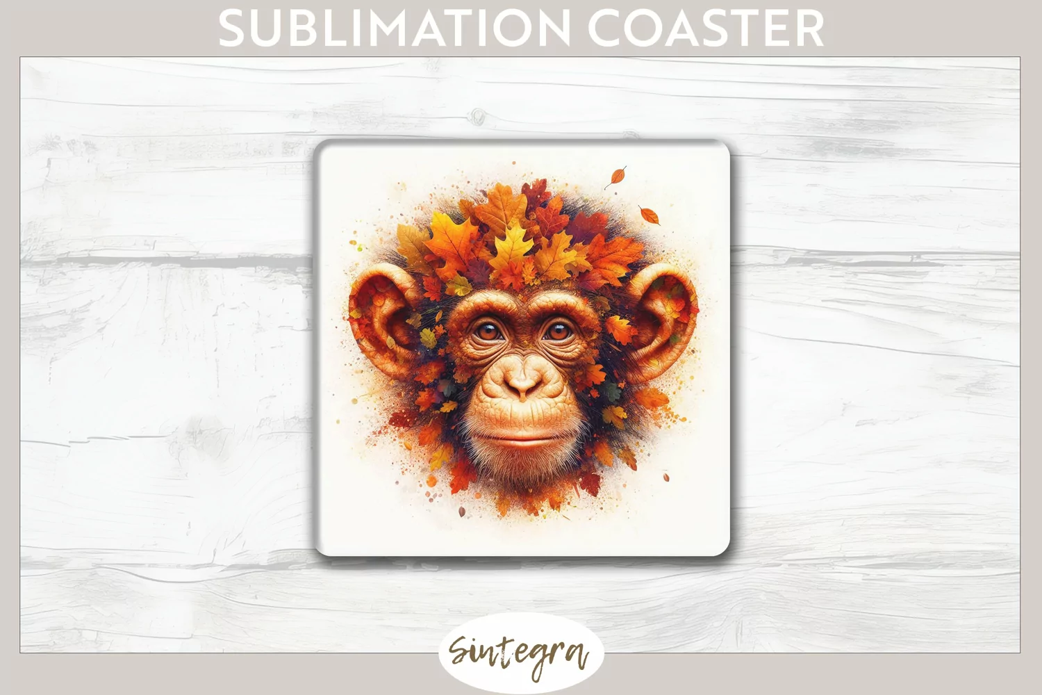 Fall Chimpanzee Animal v8 Square Coaster Sublimation example image 1