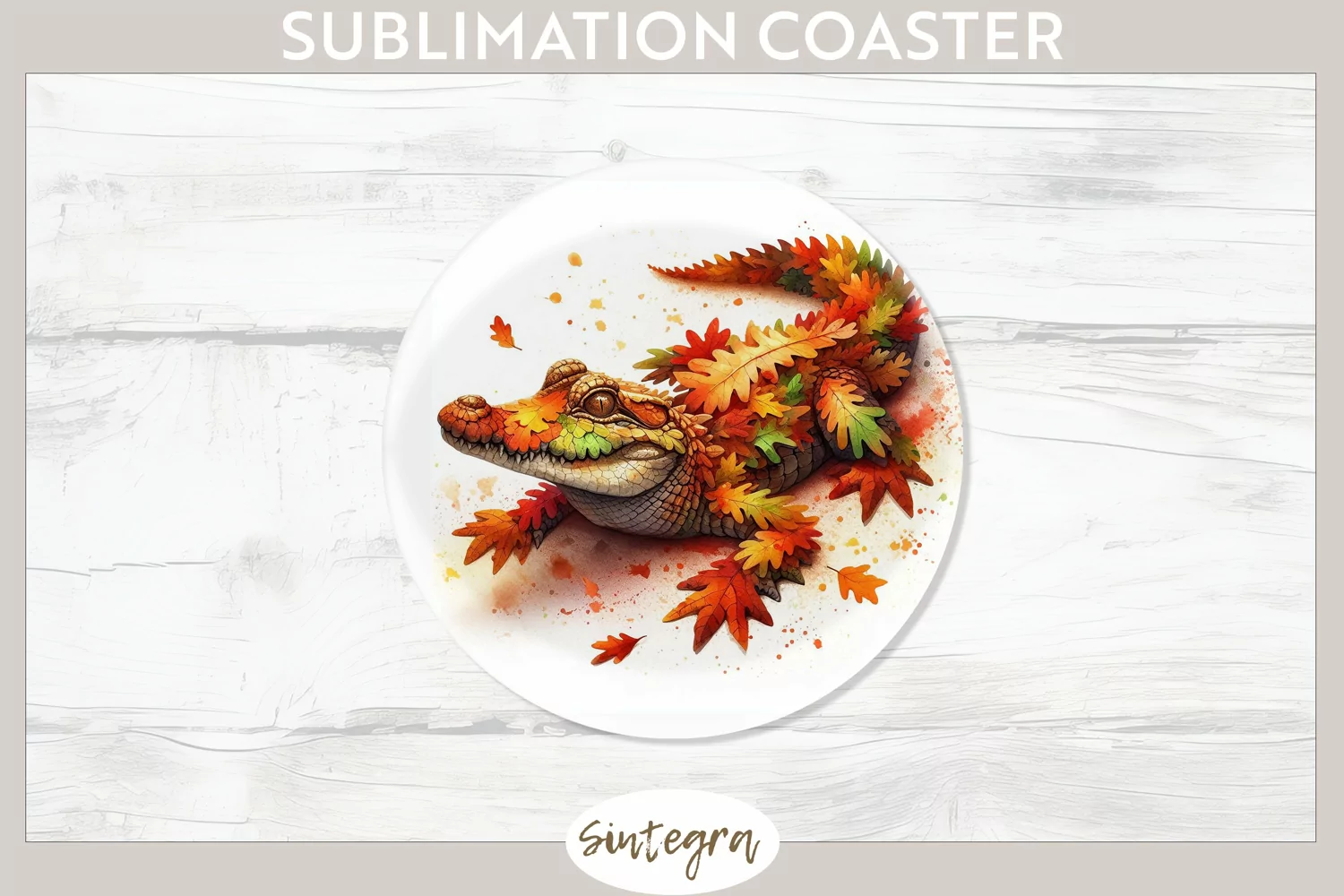 Fall Crocodile Animal v8 Round Coaster Sublimation example image 1