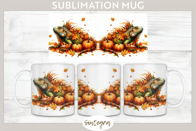 Fall Iguana Animal v4 Mug Wrap Sublimation