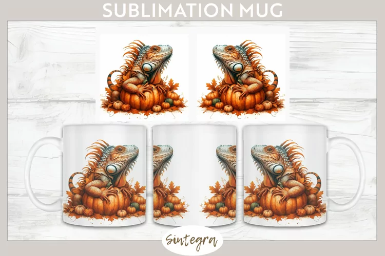 Fall Iguana Animal v6 Mug Wrap Sublimation
