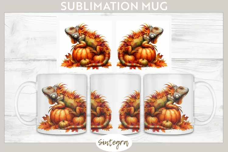Fall Iguana Animal v7 Mug Wrap Sublimation