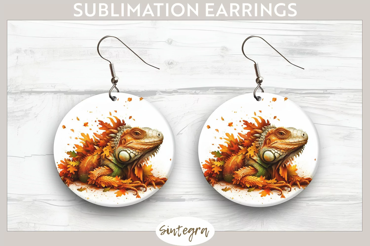Fall Iguana Animal v8 Round Earrings Sublimation example image 1