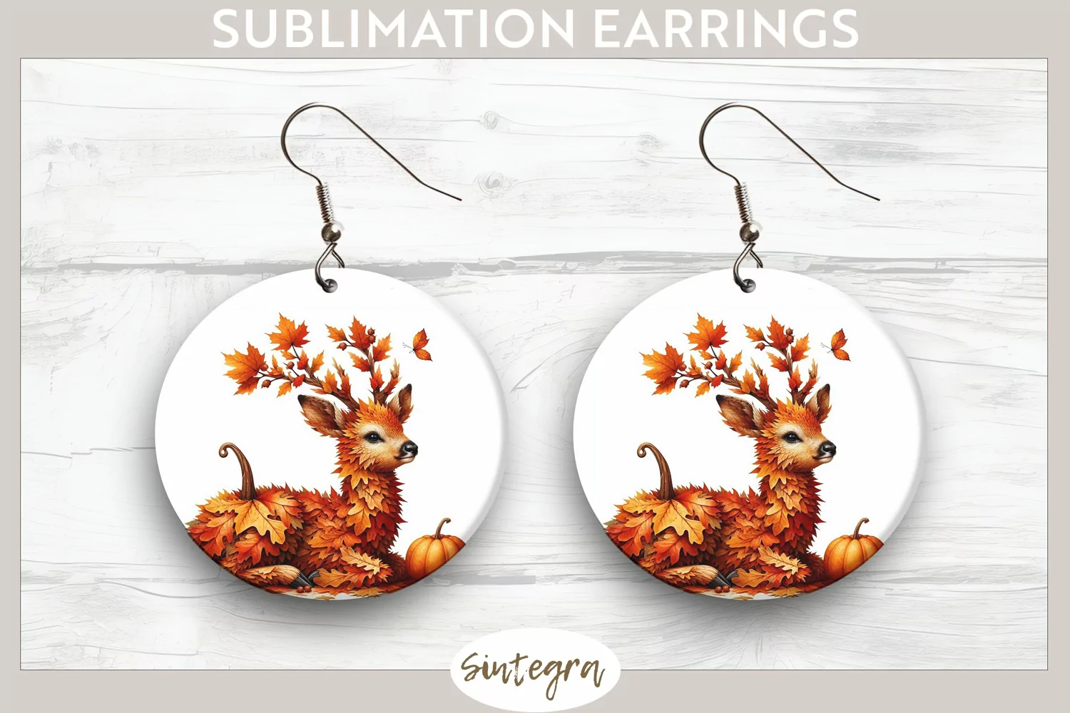 Fall Antelope Animal v4 Round Earrings Sublimation example image 1