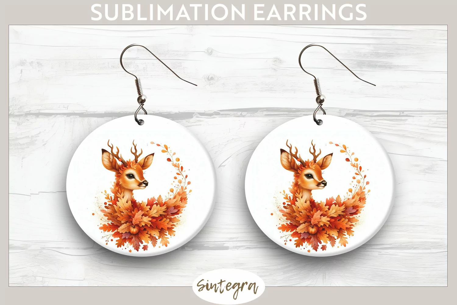 Fall Antelope Animal v7 Round Earrings Sublimation example image 1