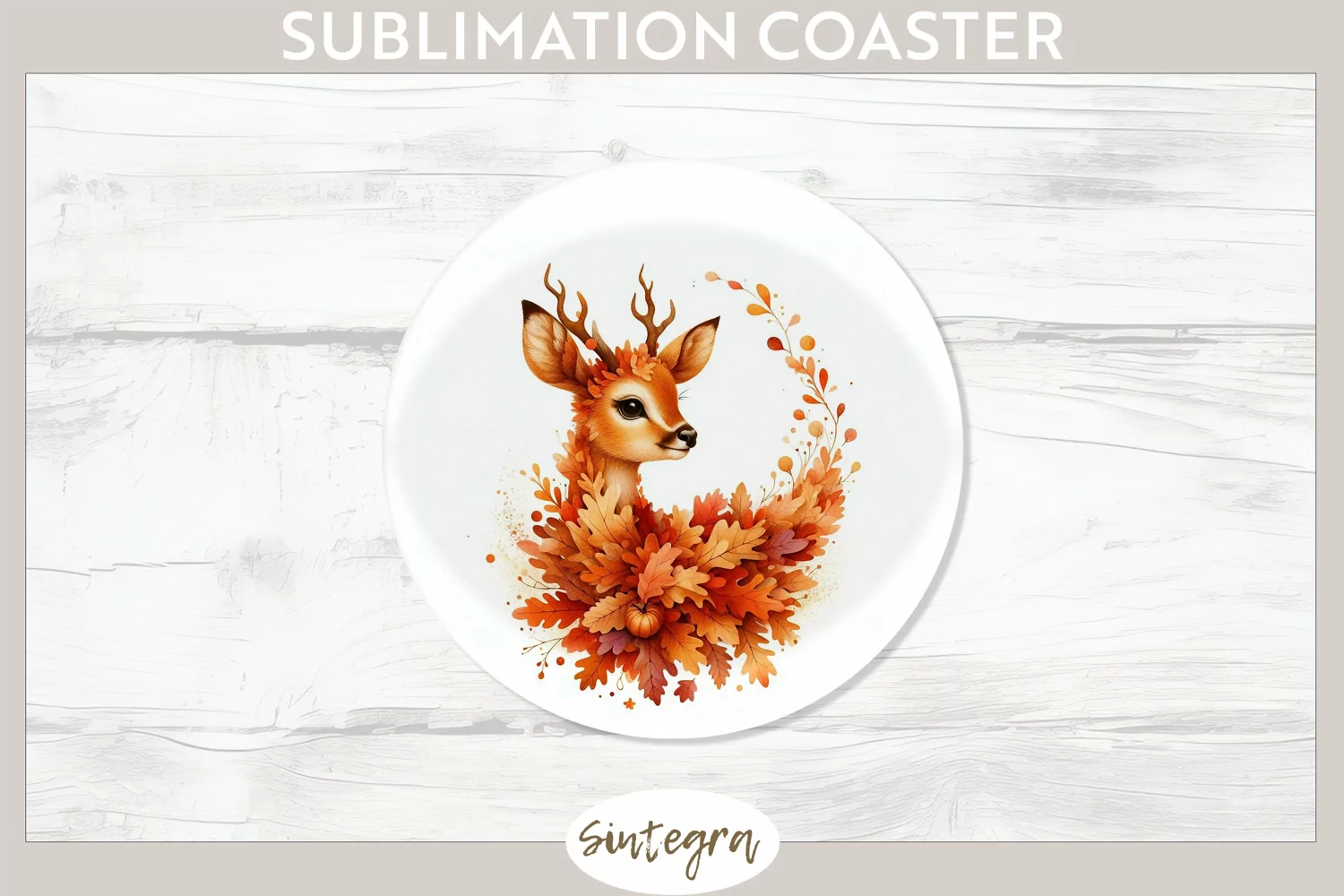 Fall Antelope Animal v7 Round Coaster Sublimation example image 1