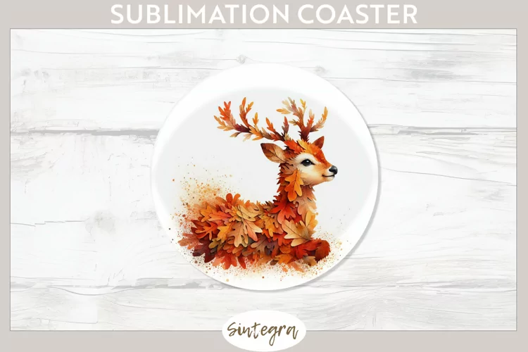 Fall Antelope Animal v8 Round Coaster Sublimation example image 1