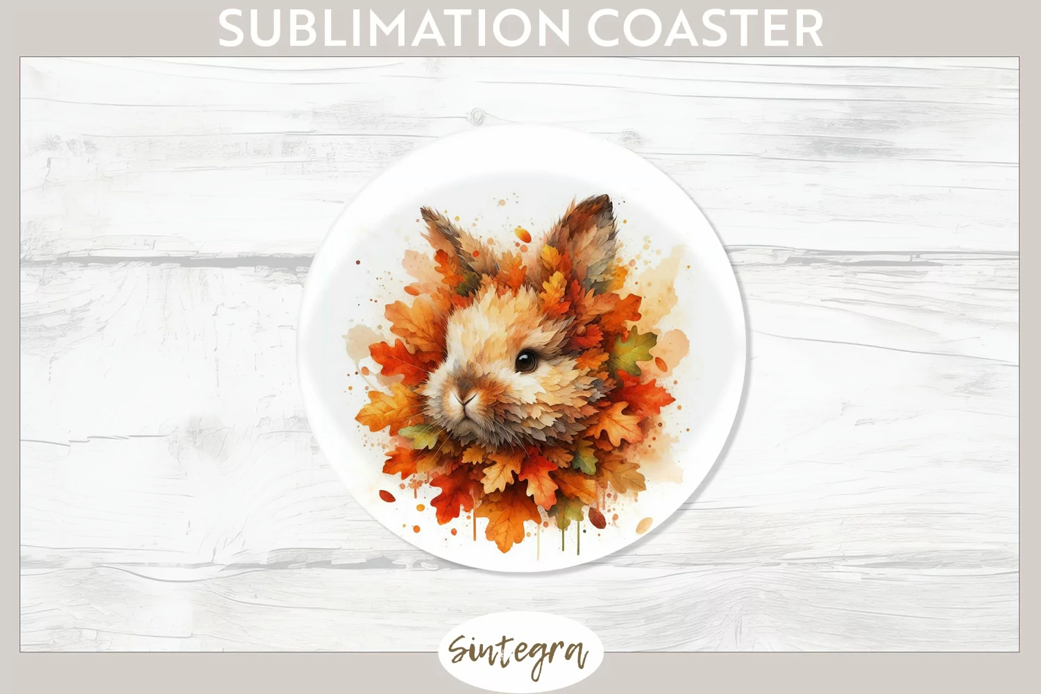 Fall Bunny Animal v4 Round Coaster Sublimation example image 1