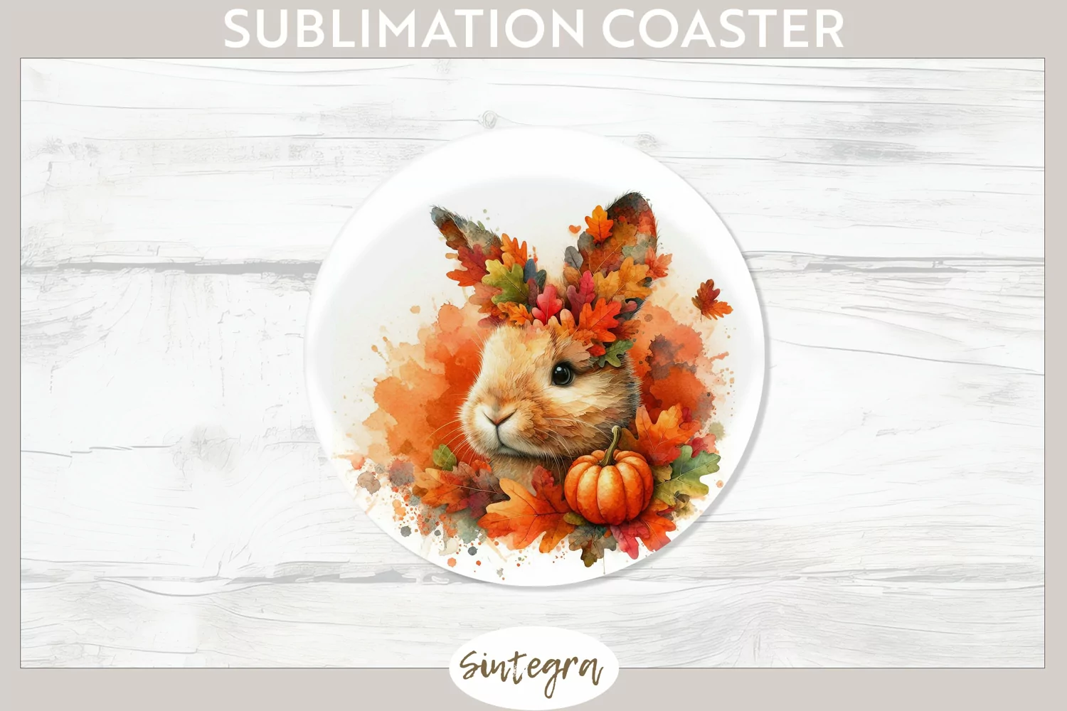 Fall Bunny Animal v7 Round Coaster Sublimation example image 1