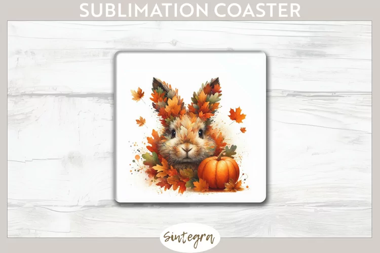 Fall Bunny Animal v2 Square Coaster Sublimation example image 1
