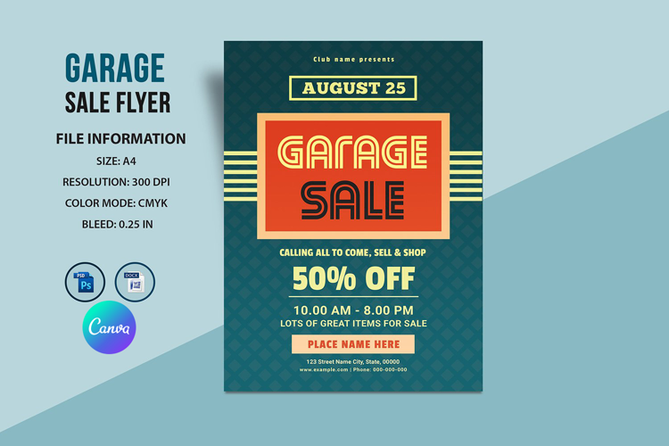 Garage Sale Flyer Template , Canva, Ms word and Photoshop