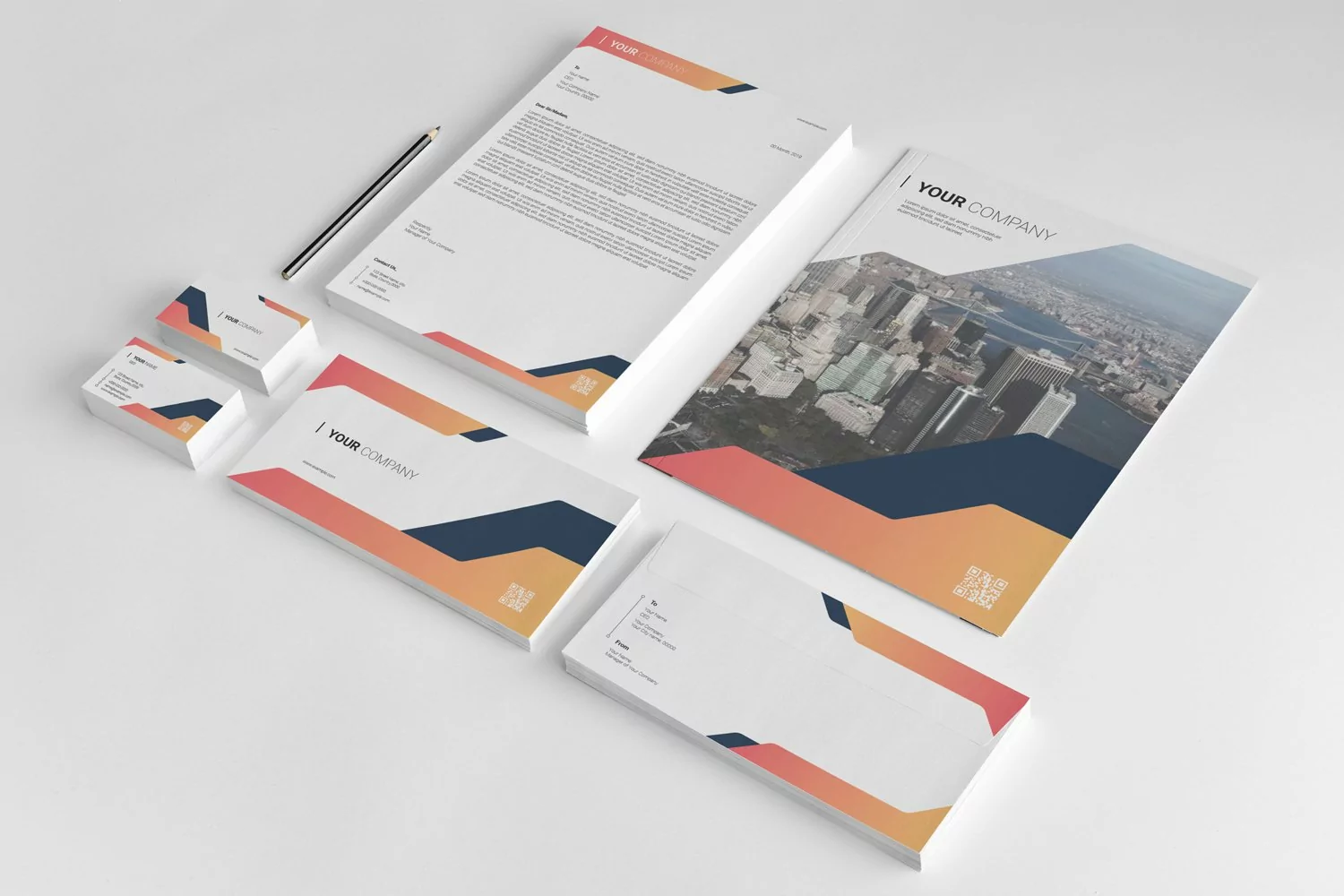 Corporate Identity Template is made in a modern style with trendy elements.All elements are grouped and properly organized. You can easily customized them.