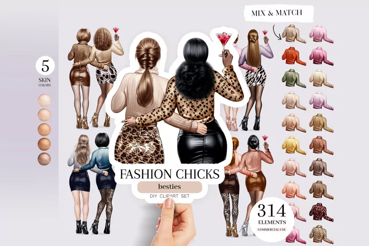 Similar Design Products to Fashion Chicks Clipart, Best Friends Girls, Custom Portrait