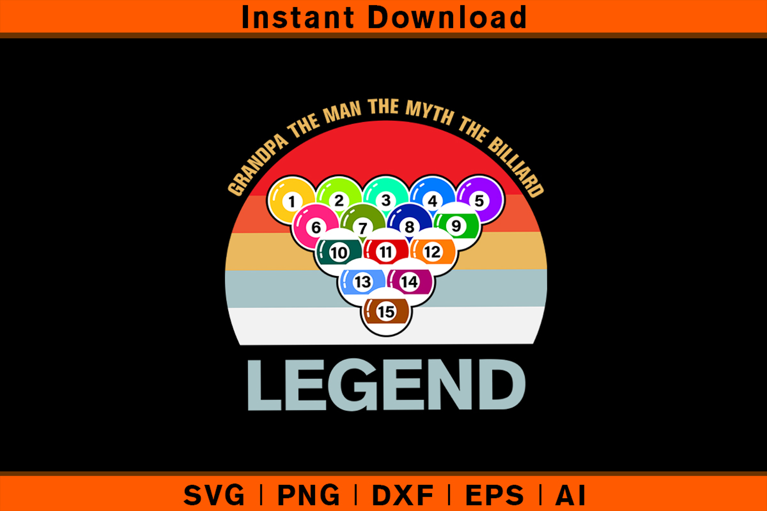 Celebrate your grandpa’s love for pool with this Grandpa Billiards Legend SVG design. Featuring a colorful rack of pool balls with the phrase “Grandpa The Man The Myth The Billiard Legend”, this design is perfect for billiards enthusiasts who are true legends of the game. Great for making t-shirts, hoodies, mugs, tote bags, posters, and man cave décor. Ideal for occasions like Father’s Day, Grandparents’ Day, birthdays, Christmas, or pool tournaments. Works seamlessly with Cricut, Silhouette, and other cutting machines.