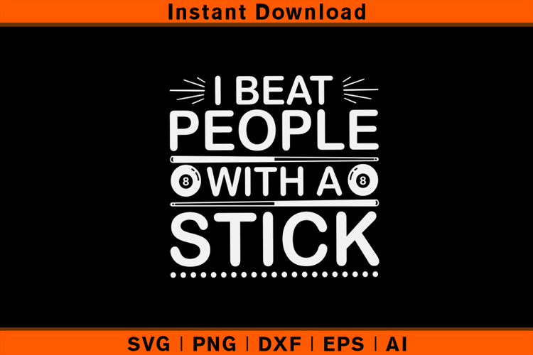Bring humor to your projects with this I Beat People With a Stick SVG design. Featuring bold text with 8 balls and cue sticks, this funny phrase is perfect for billiards and pool lovers who enjoy a good laugh. Great for making t-shirts, hoodies, mugs, tote bags, posters, and bar décor. Ideal for occasions like Father’s Day, birthdays, Christmas, pool tournaments, or casual game nights. Works seamlessly with Cricut, Silhouette, and other cutting machines.
