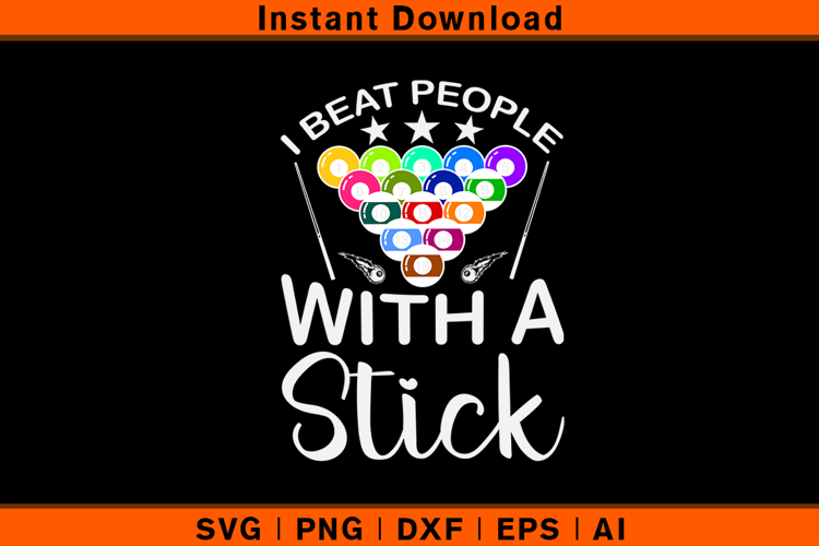 Get a laugh with this I Beat People With a Stick SVG design. Featuring a colorful billiard ball rack, cue sticks, and a bold funny phrase, this design is perfect for pool players who love humor with their game. Great for customizing t-shirts, hoodies, mugs, tote bags, posters, and bar décor. Ideal for occasions like Father’s Day, birthdays, Christmas, pool tournaments, or casual game nights. Works seamlessly with Cricut, Silhouette, and other cutting machines.