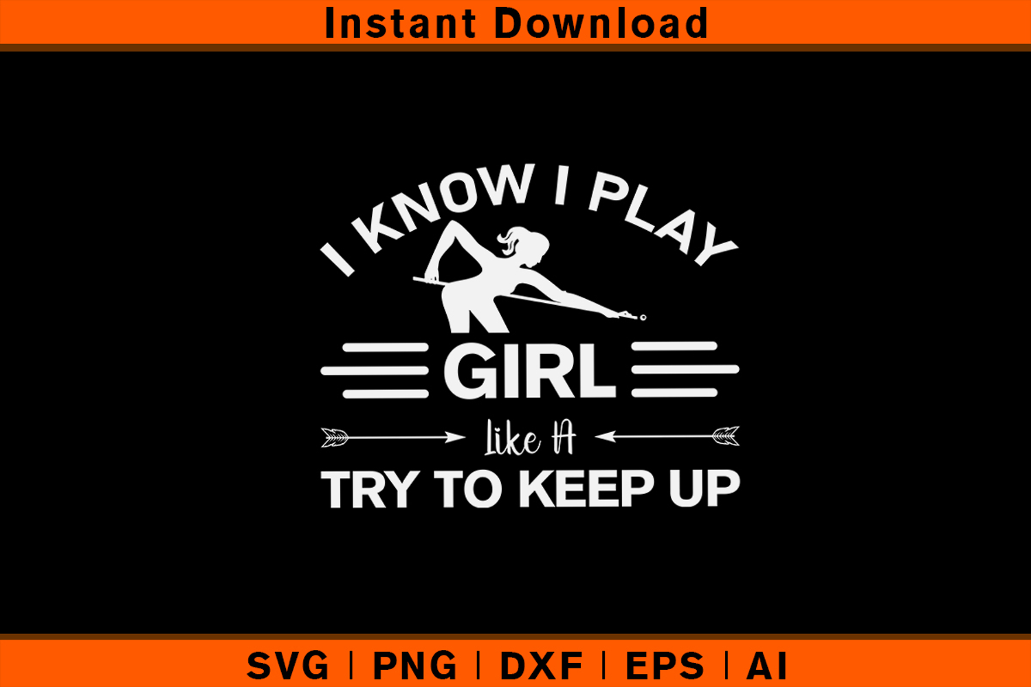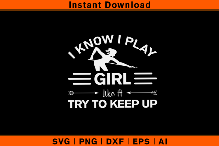 Show off your confidence at the pool table with this bold Billiards Girl SVG featuring the quote “I Know I Play Like A Girl – Try To Keep Up.” Perfect for empowering female players and adding style to your custom t-shirts, hoodies, mugs, tote bags, posters, and more. Great for pool lovers, billiard tournaments, sports gifts, and women who love to compete. Fully compatible with Cricut, Silhouette, and all major cutting machines.