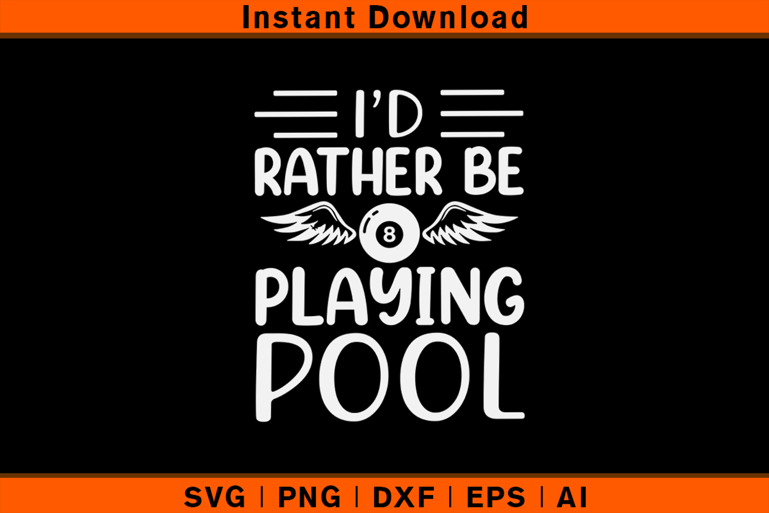 Show off your passion for the game with this fun billiards SVG design that says “I’d Rather Be Playing Pool.” Featuring a winged 8-ball, this design is perfect for creating t-shirts, hoodies, mugs, posters, tote bags, and gifts for pool players and billiards lovers. Great for birthdays, Father’s Day, league nights, or just casual wear. Compatible with Cricut, Silhouette, and all major cutting machines.
