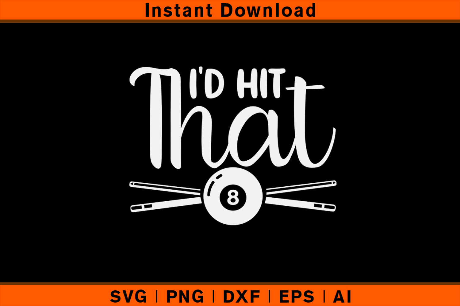 Bring humor to your pool passion with this fun billiards SVG design that says “I’d Hit That.” Featuring an 8-ball with crossed pool cues, this design is perfect for t-shirts, hoodies, mugs, posters, tote bags, and more. Ideal for billiards lovers, league players, or anyone with a sense of humor. Makes a great gift for Father’s Day, birthdays, or pool tournaments. Compatible with Cricut, Silhouette, and all major cutting machines.