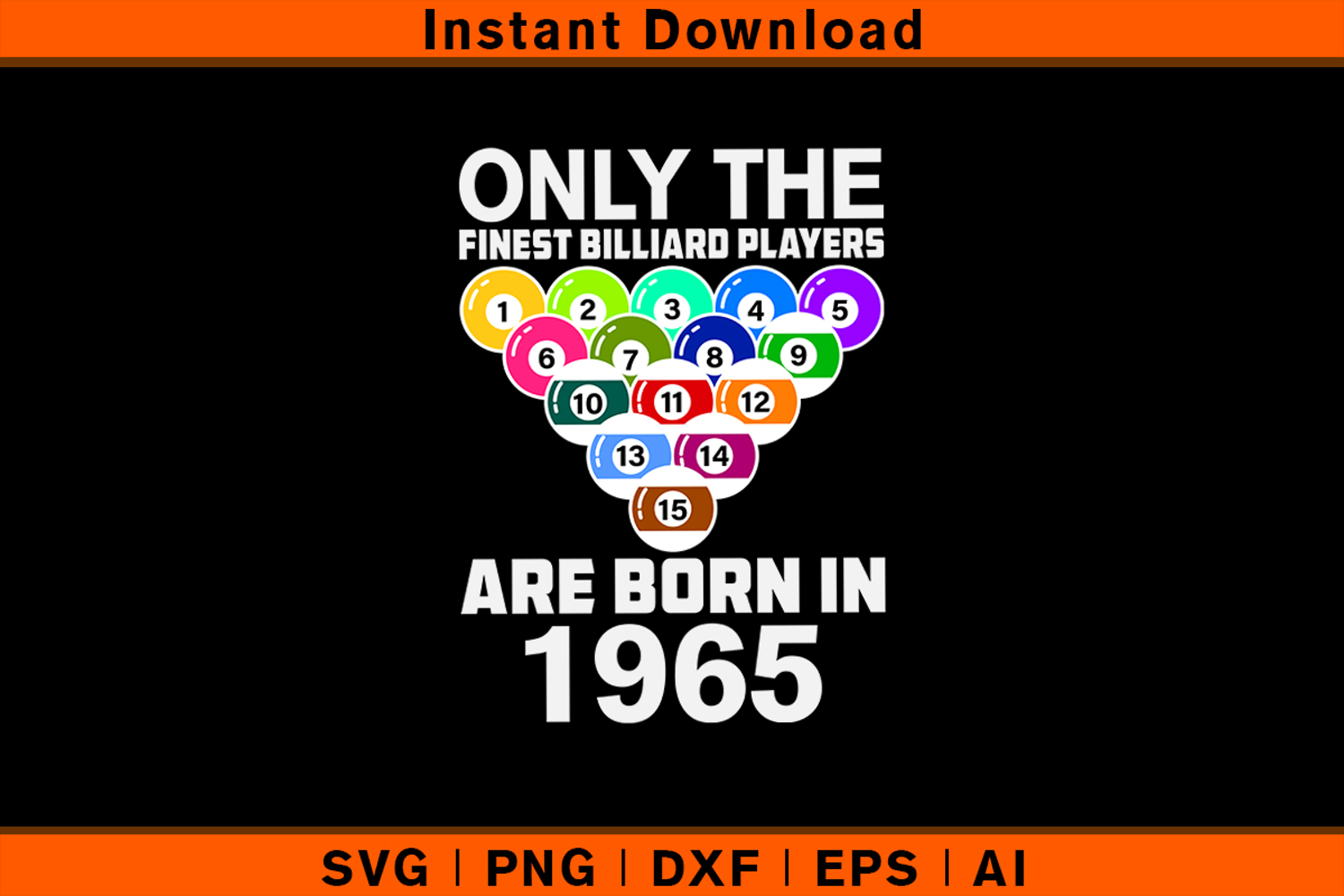 Celebrate both the game and the year with this Only The Finest Billiard Players Are Born In 1965 SVG! Featuring a bold billiards rack with vibrant pool balls, this design is perfect for birthday gifts, pool players, and billiard lovers.