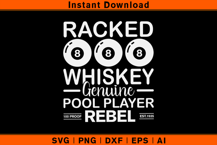 Celebrate your love for whiskey and billiards with this bold Racked Whiskey Genuine Pool Player SVG. Featuring the iconic 8-ball paired with vintage whiskey label vibes, this design is perfect for pool lovers who enjoy a good drink. Use it for t-shirts, hoodies, bar signs, mugs, wall art, and more.