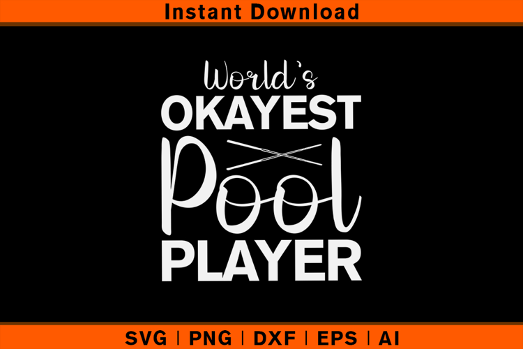 Show off your playful side with this humorous "World’s Okayest Pool Player" SVG design! Featuring bold typography and crossed pool cues, this design is perfect for casual billiards players who love to have fun. Ideal for t-shirts, hoodies, mugs, tote bags, posters, and more.