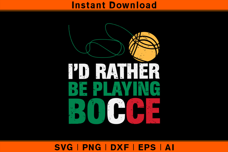 Show your passion for bocce with this bold "I’d Rather Be Playing Bocce" SVG design! Featuring vibrant text in the colors of the Italian flag and a bocce ball graphic, this design is perfect for bocce enthusiasts who want to express their love for the game. Ideal for t-shirts, hoodies, mugs, tote bags, posters, and more.