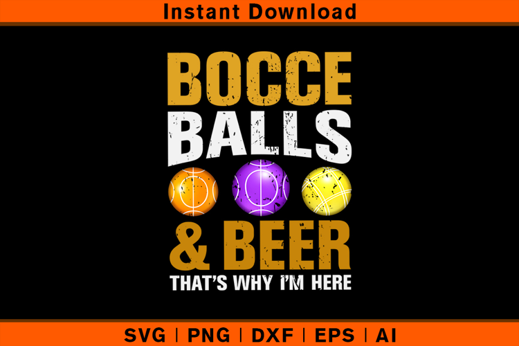 Celebrate your love for bocce and good times with this fun "Bocce Balls & Beer That’s Why I’m Here" SVG design! Featuring colorful bocce balls and bold typography, this design is perfect for bocce players who enjoy the game and a cold beer. Ideal for t-shirts, hoodies, mugs, tote bags, posters, and more.
