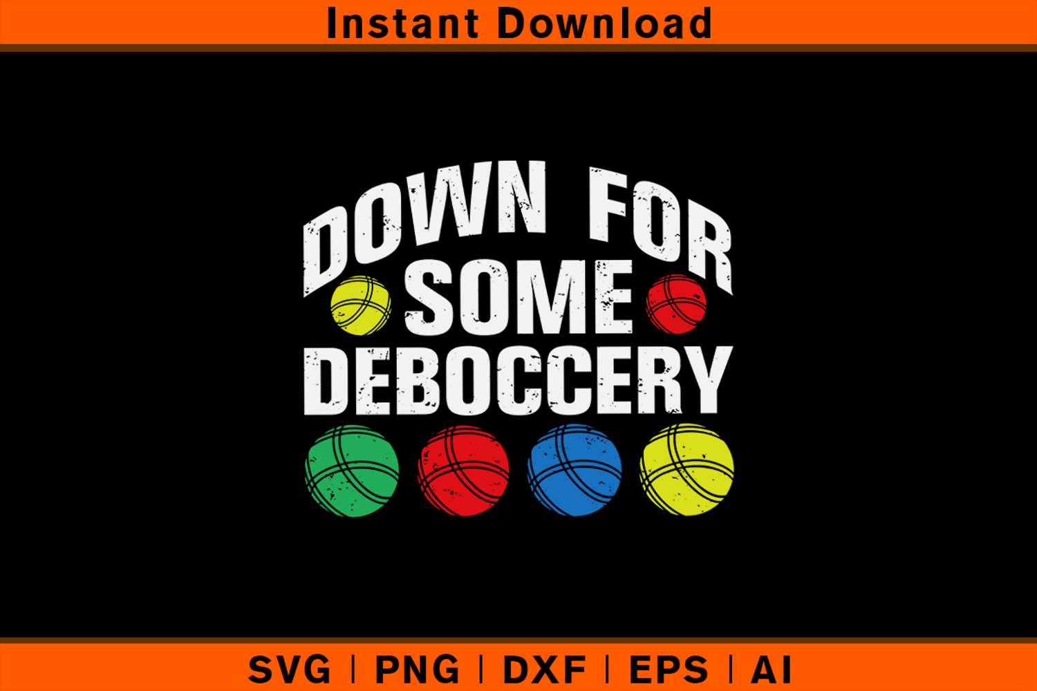 Bring humor and color to your bocce game with this “Down For Some Deboccery” SVG design!