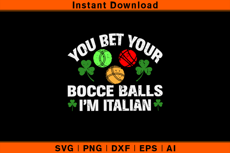 Show off your Italian pride with this “You Bet Your Bocce Balls I’m Italian” SVG design! Featuring bold lettering, colorful bocce balls, and lucky shamrocks, this funny and festive design is perfect for bocce lovers who embrace their heritage and humor. Ideal for shirts, hoodies, mugs, aprons, tote bags, and more!