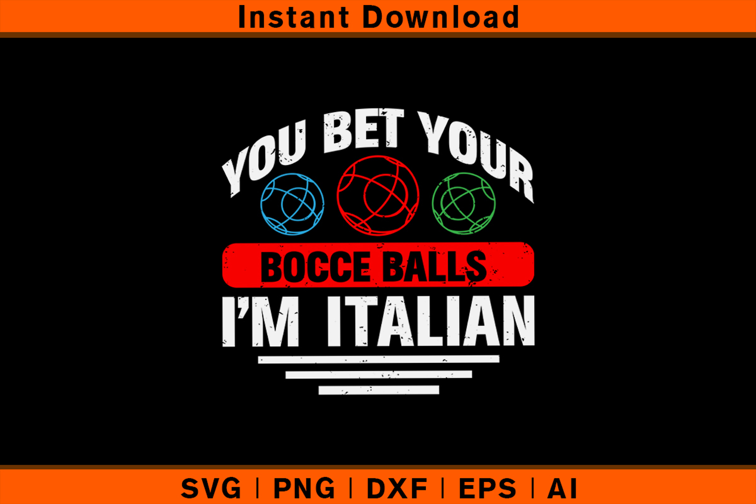 Show off your Italian pride and love for bocce with this You Bet Your Bocce Balls I’m Italian SVG! Featuring vibrant red, green, and blue bocce balls with bold, distressed lettering, this funny and patriotic design is perfect for Italian families, bocce players, and anyone who loves a good laugh on the court.