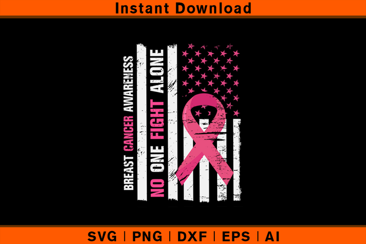 Show strength and unity with this No One Fights Alone Breast Cancer Awareness SVG design. Featuring a distressed American flag with a bold pink ribbon, this design symbolizes hope, courage, and support for all those battling breast cancer. Perfect for awareness events, fundraisers, and October campaigns.