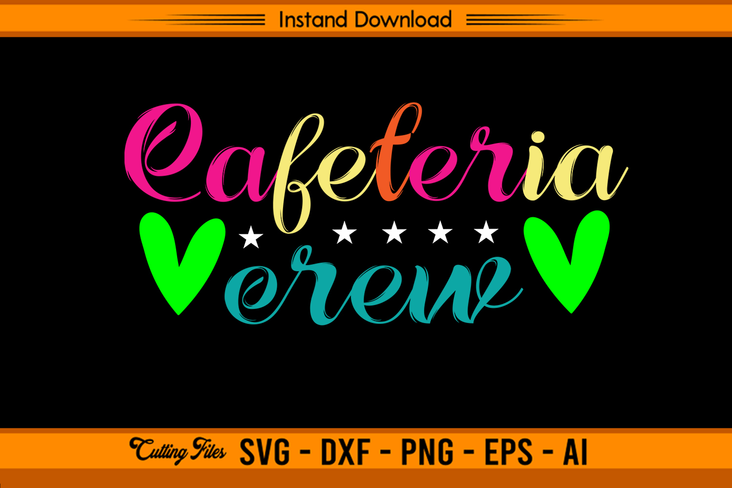 Bring color and positivity to your cafeteria team with this bright and fun “Cafeteria Crew” SVG design! Featuring stylish script lettering with colorful hearts and star accents, this cheerful design is perfect for lunch ladies, kitchen staff, and school cafeteria workers who love spreading smiles with every meal. Great for creating matching shirts, tote bags, mugs, aprons, and other team gifts.