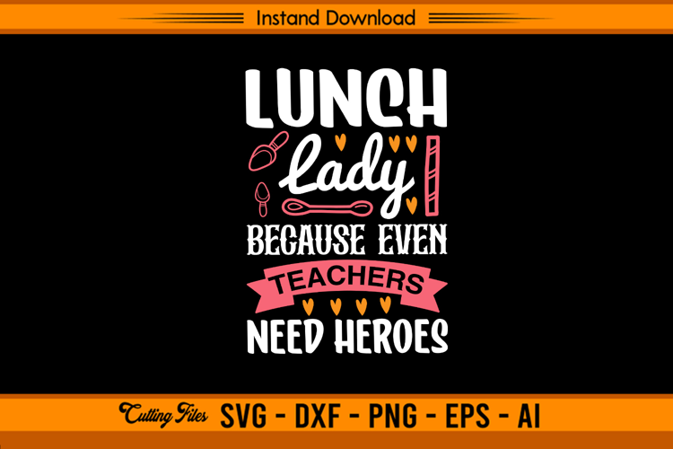 Celebrate the true heroes of every cafeteria with this Lunch Lady Because Even Teachers Need Heroes SVG design! Featuring bold, playful typography with hearts, utensils, and banner accents, this fun and inspiring design honors the hardworking lunch ladies who keep schools running strong.